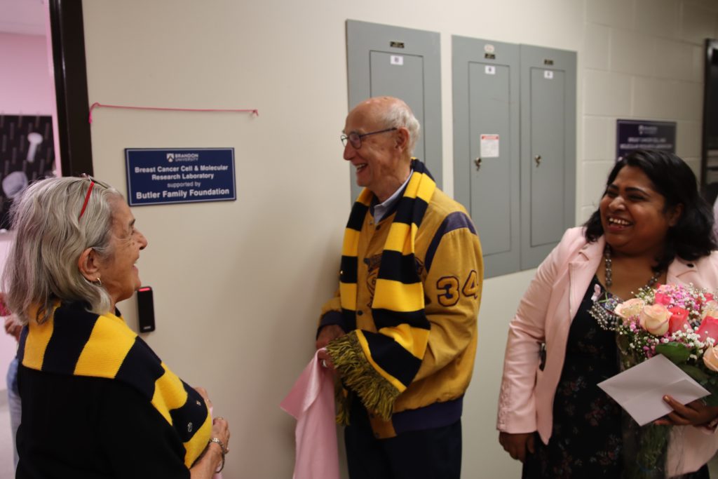 Another event early on recognized the impact that alumni giving can make. At the vaunted Breast Cancer Cell and Molecular Research Laboratory in the Brodie Science Building, a plaque was unveiled to recognize the support that Gerald and Carmen Butler provided its research.