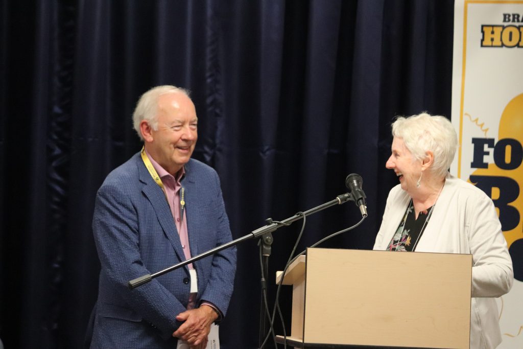 At Saturday evening’s Awards Banquet, a $100,000 gift was revealed to the crowd, from alumni Garry and Colleen Miller, who were there to celebrate the Class of 1965. The couple made the six-figure commitment to the BU Foundation in support of student bursaries.
