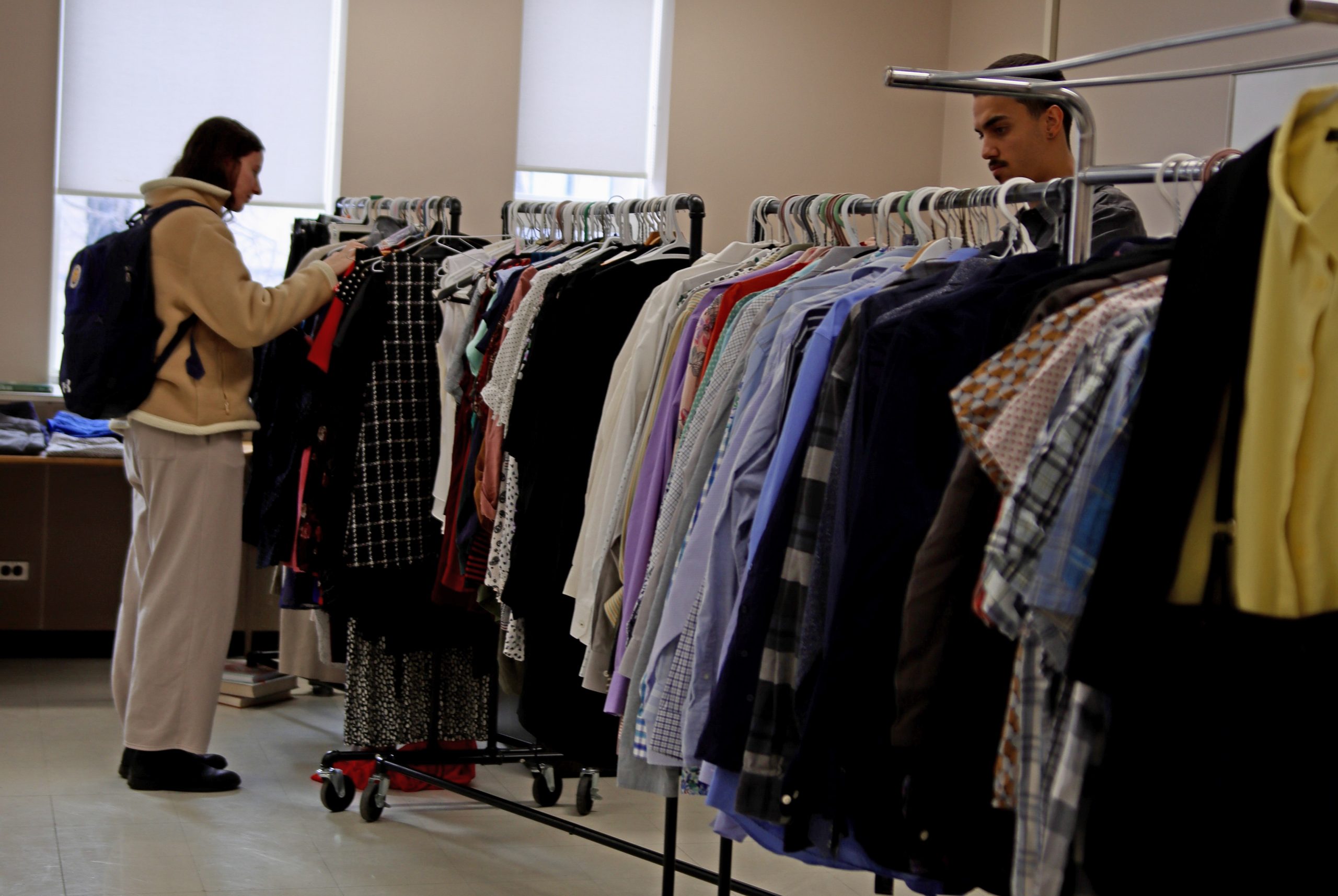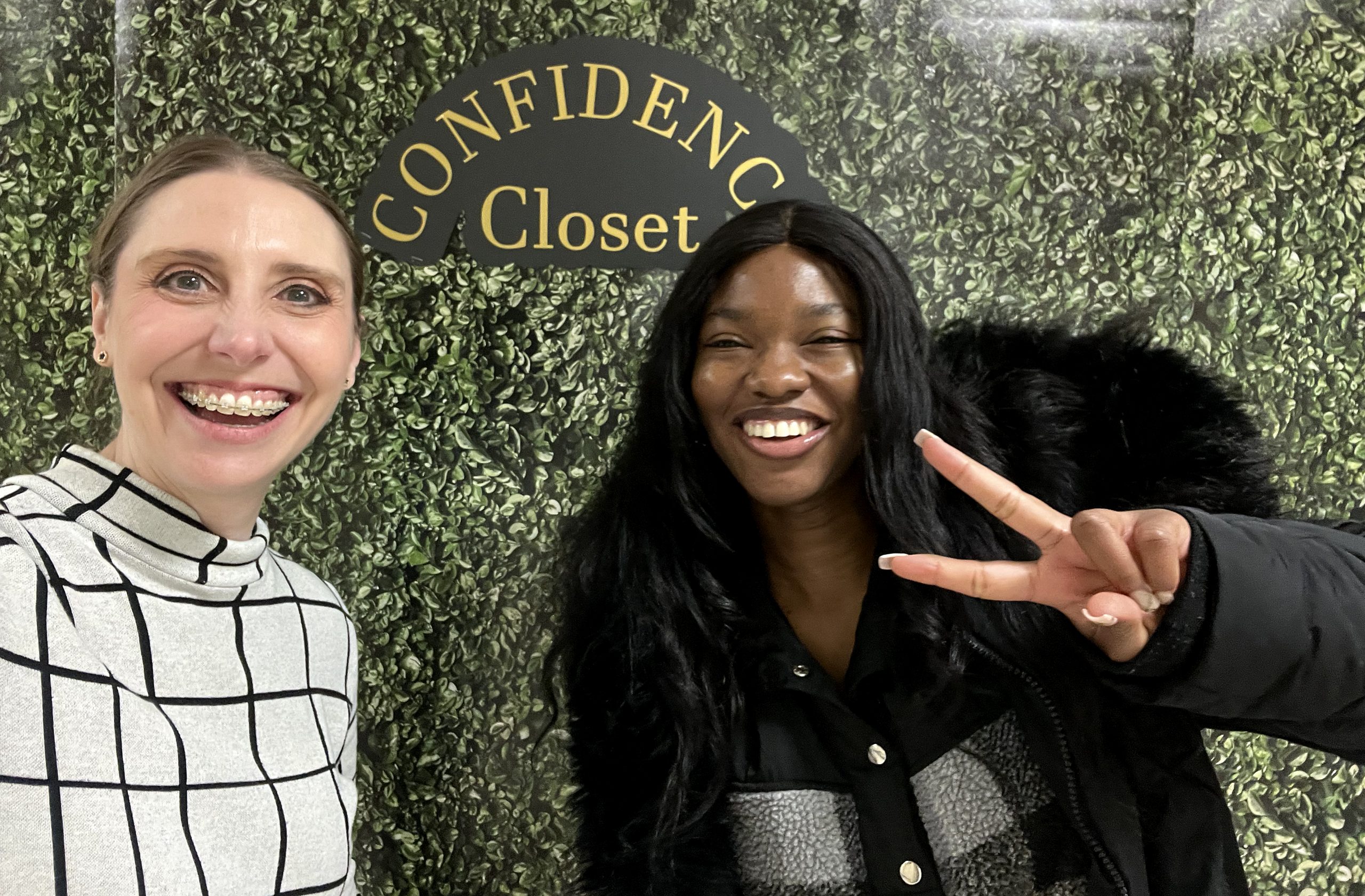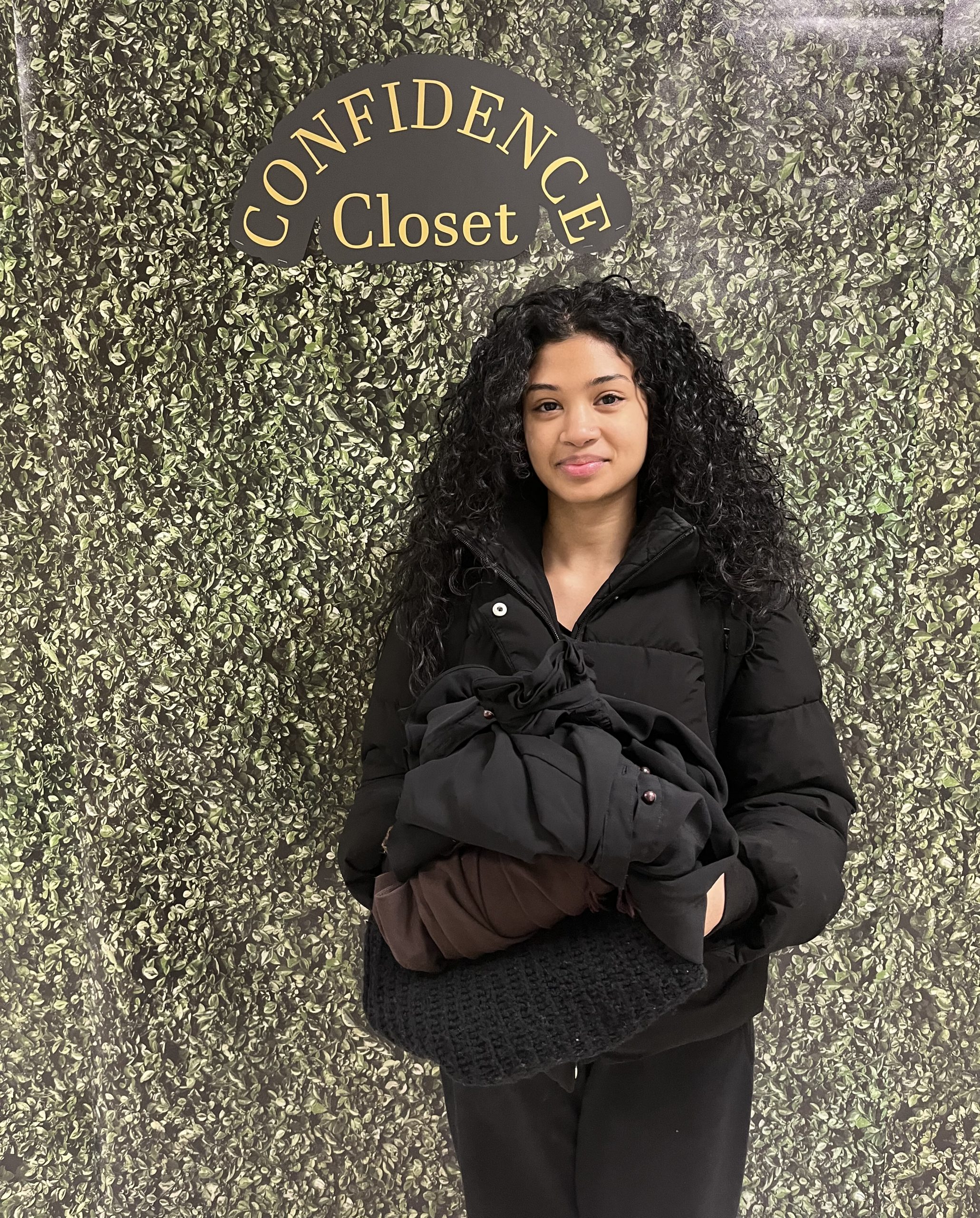 Bovis-Cnossen had contributed from her own household closets to help stock the shelves and racks at the Confidence Closet, which relied on similar generosity from campus and community partners, clothing donors, and volunteers.